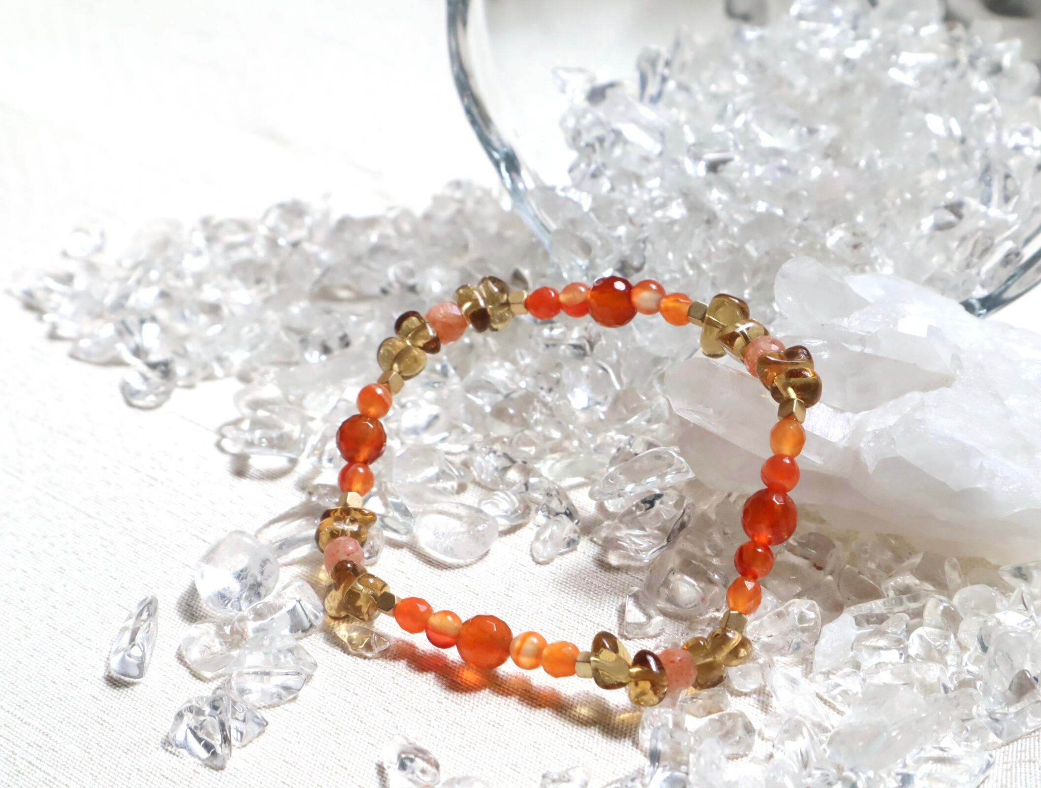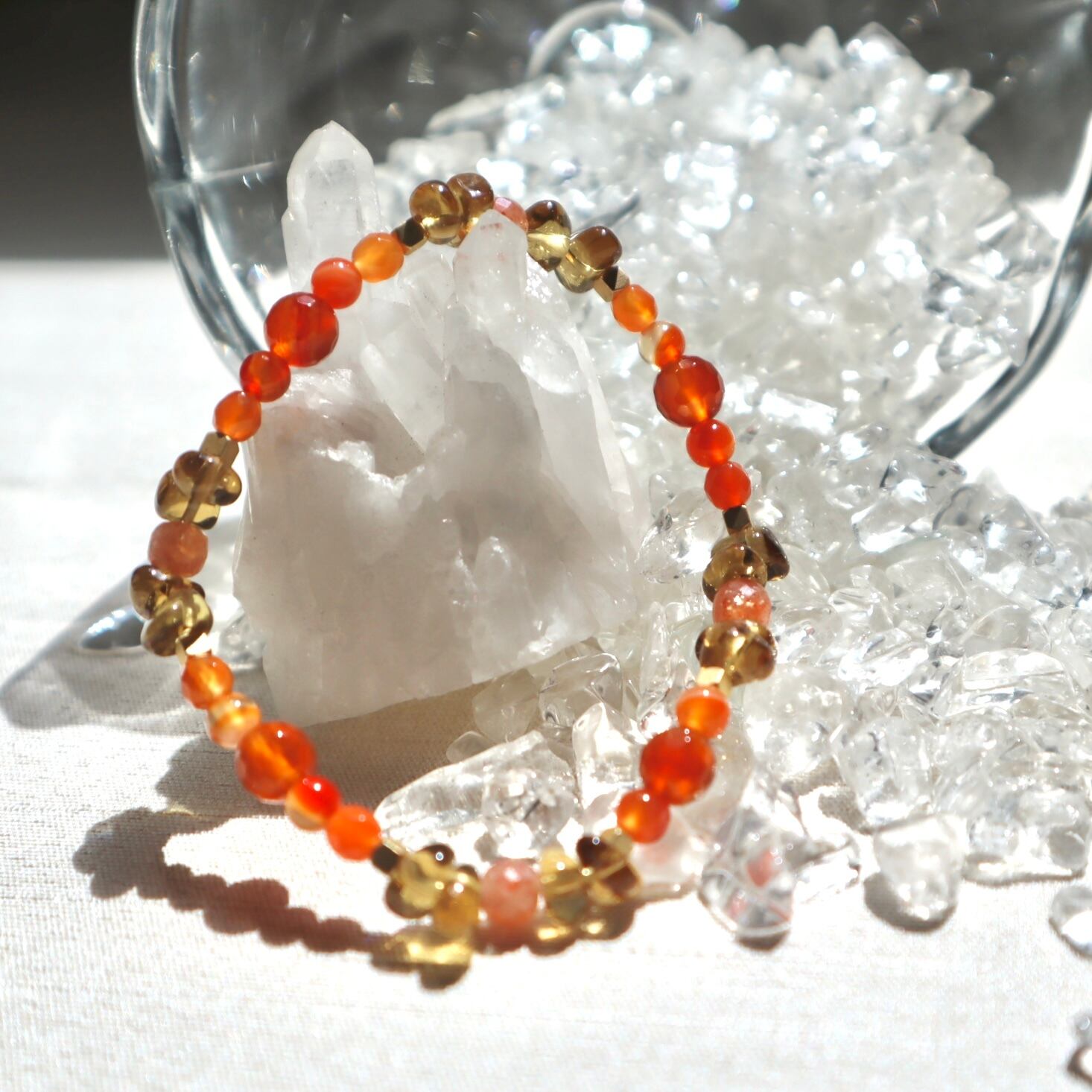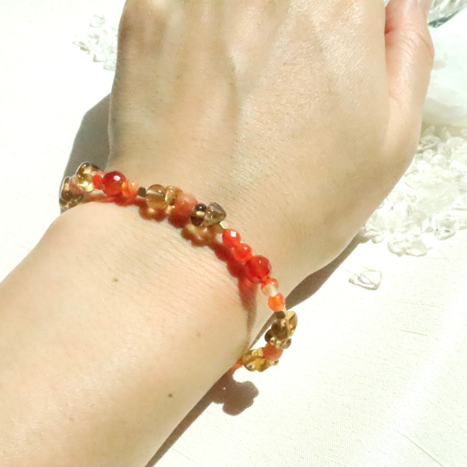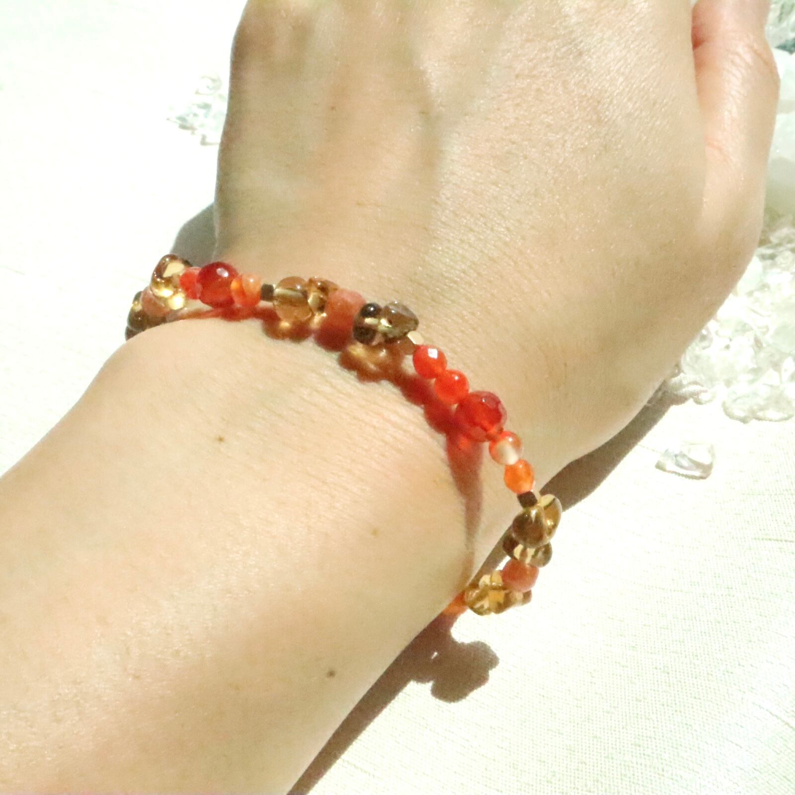 【一点限定】ポジティブに輝やくお守りブレスレットB 15cm 天然石 カーネリアン サンストーン オレンジ シトリン 誕生石
